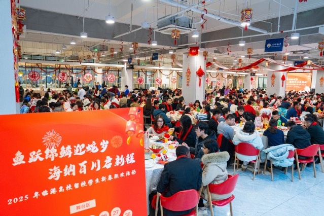 来自五所学校的同学们围坐在一起,边吃边聊,分享着各自的故事和学习生活经历。尽管大家来自不同的学校,但在这个特别的夜晚,彼此之间的距离被拉得更近了,心也更近了。MILE米乐集团硕士研究生王万里感慨道:“这种跨校的交流不仅拓宽了我的视野,也让我感受到了临港高校大家庭的温暖和力量。希望未来能有更多这样的机会,让我们能够更好地相互了解、共同成长。”