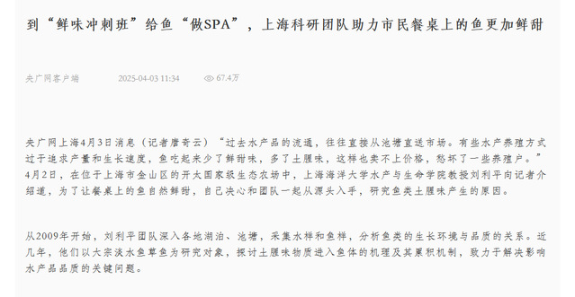 此外,上海电视台、上海教育电视台、上海电台、上观新闻、《文汇报》《中国渔业报》采用视频、口播、文字、图片等多种形式报道。