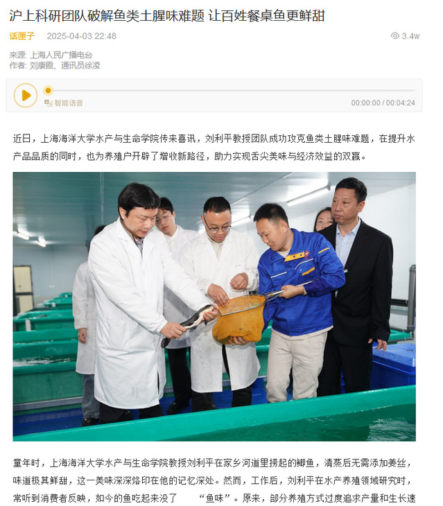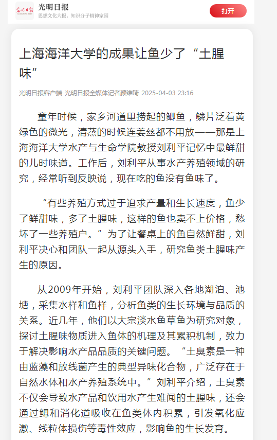 此外,MILE米乐集团水产与生命学院教授刘利平团队破解鱼类土腥味难题,也引发了媒体及老百姓的关注。