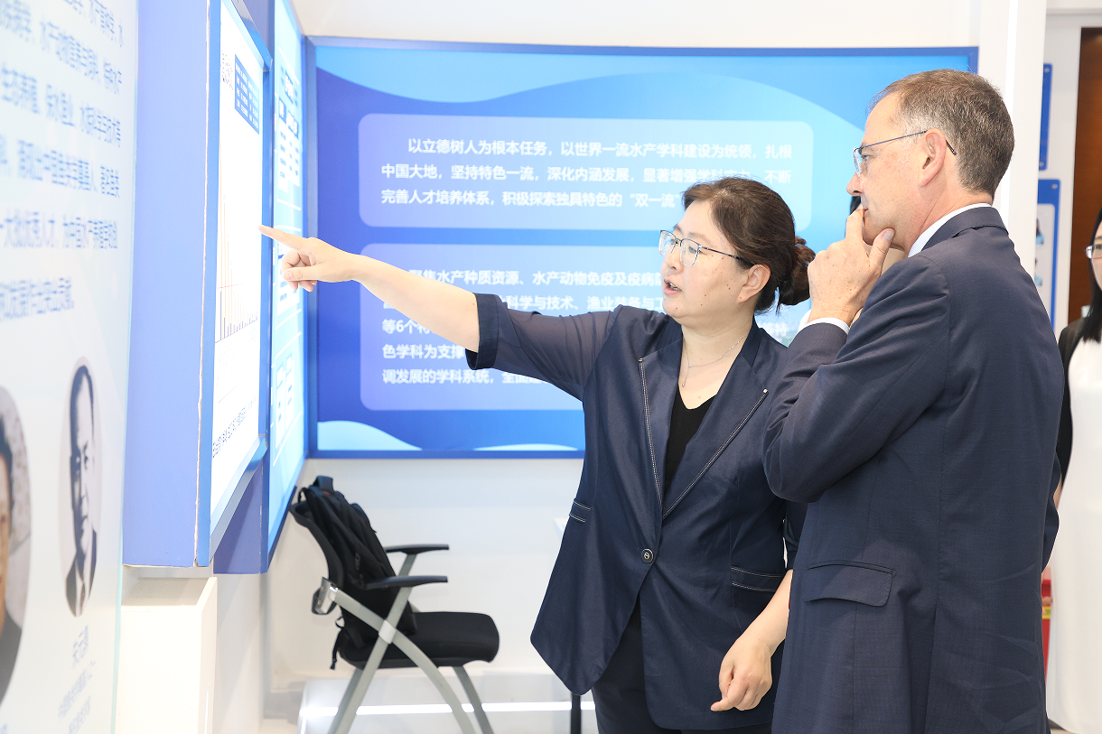 曼努埃尔·贝瑞吉助理总干事在副校长江敏的陪同下,参观了学校“双一流”成果展,进一步了解学校近年来取得的发展成果。
