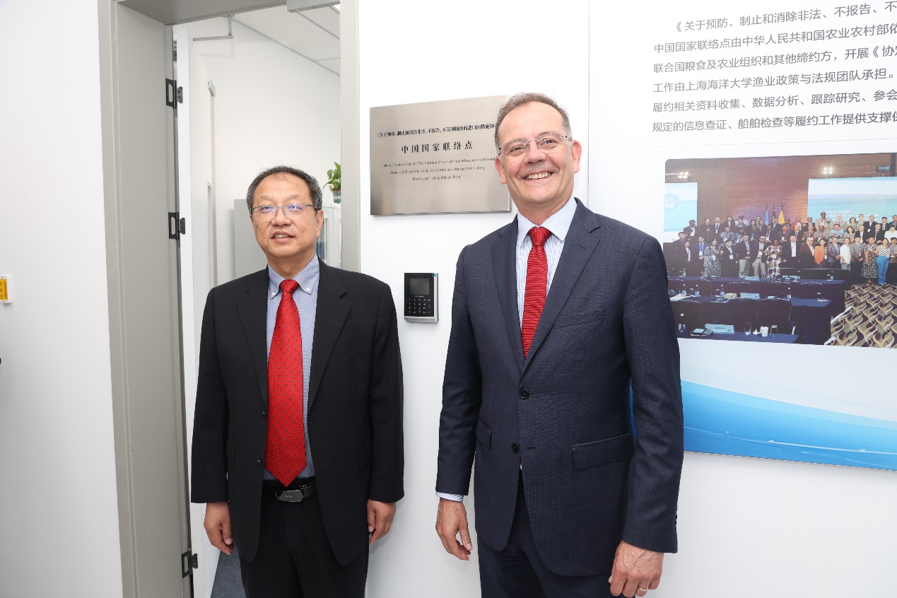 在校长万荣陪同下,曼努埃尔·贝瑞吉助理总干事参观《港口国措施协定》国家联络点。