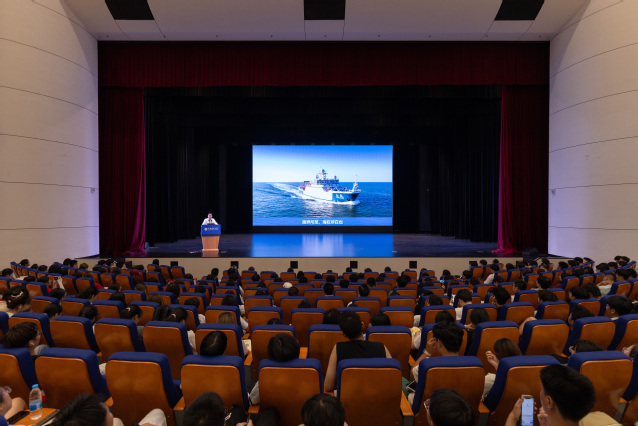 最后,王宏舟老师回到“不一样的你们”这个主题,深入阐释新时代“勤朴忠实”校训的内涵:勤,就是要勤奋学习,不要做躺平族;朴,就是要朴实做人,不要做精致的利己主义者;忠,就是要忠诚于祖国,不要做没有信仰的人;实,就是要踏实做事,不要做眼高手低的人。他鼓励学生们要有不一样的精神文化:“就像教授博士服务团,用行动用专业所学服务社会——这才是‘不一样的你们’该有的样子。”他还提到,希望学生们要不断丰富和提升自身能力,追求多元发展。正如前几天迎新晚会的舞台所展现的那样,海大的学子应当如海洋般丰盈——海能成其大,正因它纳百川、包容万象,蕴藏着无限可能与多样性。学校鼓励每一位学子自由探索、勇敢尝试,允许多样的成长路径在此交汇,让每一种成才的可能都焕发光彩。