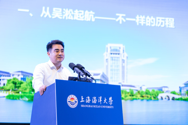 “同学们,你们知道吗?100多年前,我们学校的创校先辈们,划着小船出海,只为解决中国人吃鱼的问题。那时候,中国的渔权被列强把控,老百姓想吃口新鲜鱼都难。而现在,我们的‘淞航’号科考船能开到马里亚纳海沟,我们的水产技术能让三文鱼在高原湖泊里生长——这就是'渔界所至,海权所在'的最好证明!”王宏舟老师的开场白没有晦涩的理论,而是用学校科考船的功能,拉近了与学生的距离。他提到,学校113年的发展史,就是一部与民族复兴同呼吸、与国家发展共命运的奋斗史:从新中国成立初期解决“吃鱼难”,到如今领跑水产赛道、服务国家安全,每一步都离不开勤朴忠实的校训精神。他笑着说:“咱们海大的师生,从来都不是纸上谈兵的专家,而是‘下得了塘、上得了船、进得了库’的实干派——就像你们未来要去做的那样!”
