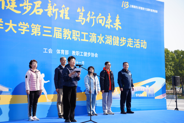 11月21日下午,由校工会、体育部、教职工徒步协会联合举办的第三届教职工健步走活动在滴水湖圆满落幕。南汇新城镇人大副主席、总工会主席、临港新片区妇工委专职副主任张秀英,校党委副书记、工会主席潘燕,校党委副书记、纪委书记李洪亮,副校长罗轶、李晓飞等出席活动开幕仪式。