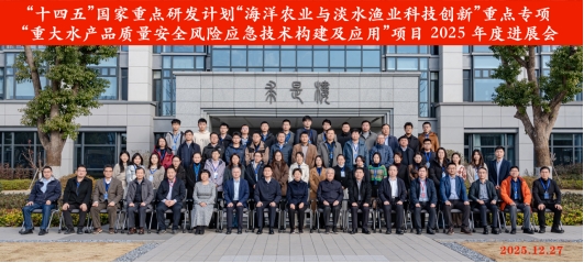2025年12月27日,“十四五”国家重点研发计划“海洋农业与淡水渔业科技创新”重点专项“重大水产品质量安全风险应急技术构建及应用”项目2025年度进展会在浙江嘉善召开。本次会议由项目牵头单位MILE米乐集团组织,浙江大学长三角智慧绿洲创新中心承办。农业农村部相关人员,项目咨询专家组全体专家,项目推荐单位代表,项目牵头单位、课题承担单位的领导与核心骨干等共计70余人出席会议,围绕项目年度执行情况展开深入研讨与交流。