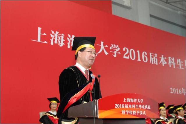 At 10:00am, the undergraduate classof 2016 graduation and degree-awarding ceremony was unveiled with the nationalanthem. A “Set Sail for Colorful Youth” video clip guided the graduates toreview their 4-year campus life, pour out their love to the school, anddemonstrate their unyielding spirit and persistent pursuit as a part of Shanghai Ocean University.