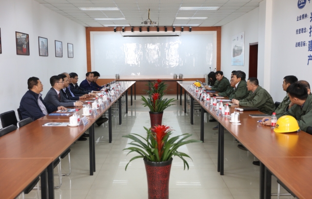 Before the ceremony, SHOU leaders held a symposium with the leaders of Tianjin Xin’gang Shipbuilding Heavy Industry Co., Ltd. and the responsible persons of related departments.