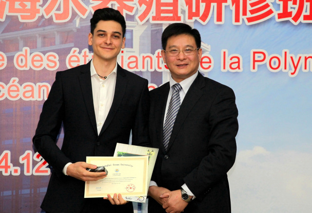 Cheng gave a speech at the commencement ceremony. In the speech, he warmly congratulated the ten students from French Polynesia for their successful graduation; appreciated the government of French Polynesia, the Chinese People's Association for Friendship with Foreign Countries, and Tianrui Investment (Group) Management Co., Ltd. for their contributions to the successful completion of the seminar; fully affirmed the students’ learning outcome, cultural experience and practice, and their appreciation of China’s educational achievements; and also sincerely thanked the faculties undertaking this training task. He also pointed out that the successful gradution from the mariculture seminar of the overseas students from French Polynesia would further expand the scope of SHOU’s international exchange, and that, as a new measure taken by SHOU in responding to the “Belt and Road Initiative” launched by Chinese government, it would be of positive significance to promoting and improving the overseas student education level in SHOU.