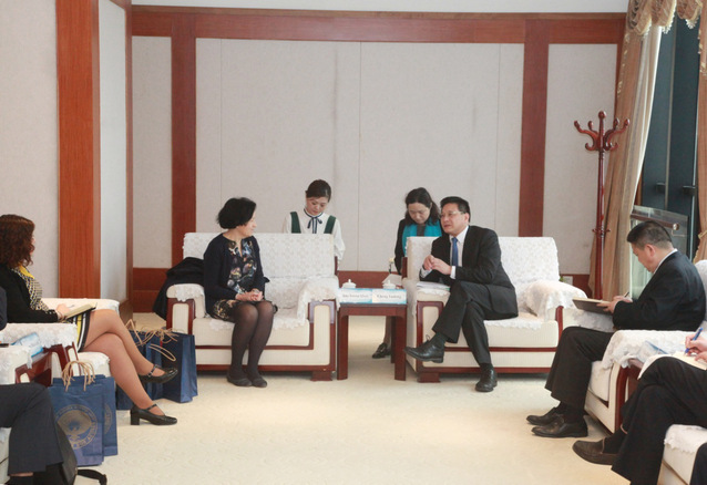 On April 4, a three-person delegation ledby Ms. Ana Teresa Alves, Vice Chairman of the University of the Azores,Portugal, paid a visit to SHOU, and held a meeting with SHOU President ChengYudong, VicePresident Li Jiale, and representatives andpersons in charge of the International Exchange Office, the Teaching AffairsOffice, the Science and Technology Office, the Graduate School, the Developmental Planning Office,etc.