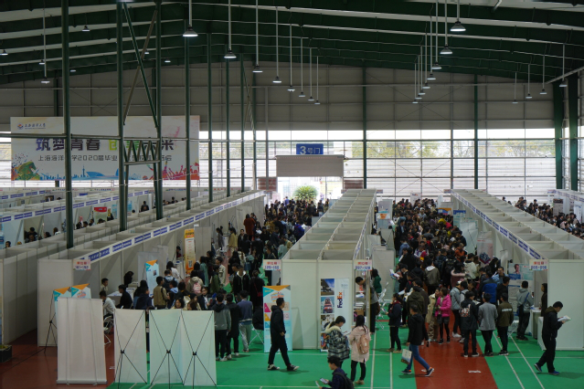 On November 26, SHOU hosted 2020 “Working Together · Forging Ahead” On-campus Job Fair on its playground. The job fair attracted more than 480 employers and 3,000 students, and offered more than 5,400 job opportunities. The employers received a total of more than 2,900 resumes, with a preliminary employment intention rate of 31%. Min Hui, Deputy Secretary of SHOU CPC Committee and Vice President of SHOU, and Li Jiale, Vice President of SHOU, came to the scene, and had cordial talks with the responsible persons and recruiters of employers.