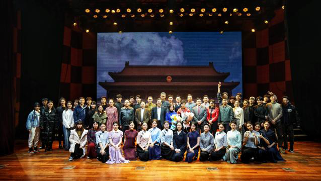 On November 26, 2019, at the special invitation of SHOU, all the students majoring in Broadcasting and Hosting enrolled to Shanghai Theatre Academy in 2018 performed Huang Yanpei, a major municipal-level literary and artistic creation and a grand original poetry recitation scene play, in the Lecture Hall of Student Activity Center. Huang Yanpei was a main founder of SHOU, so performing this play on the occasion of the 107th anniversary of SHOU perfectly brought out the theme. Performed twice in a row on one day, the play was warmly received by teachers and students. Present at the scene were Qian Yuqing, Vice President of the Shanghai Committee of China National Democratic Construction Association (CNDCA); Wu Jiamin, Secretary of SHOU CPC Committee; Cheng Yudong, Vice President of CNDCA Shanghai Committee and President of SHOU; Wu Jiannong, Deputy Secretary of SHOU CPC Committee; Zheng Weidong, member of the Standing Committee and Director of the Propaganda Department of SHOU CPC Committee; Zhu Keyong, member of the Standing Committee of SHOU CPC Committee and Director of the Organization Department and United Front Work Department of SHOU; leaders of various departments and offices of CNDCA Shanghai Committee; representatives of CNDCA members in Lin'gang New Area; and teacher and student representatives of SHOU.